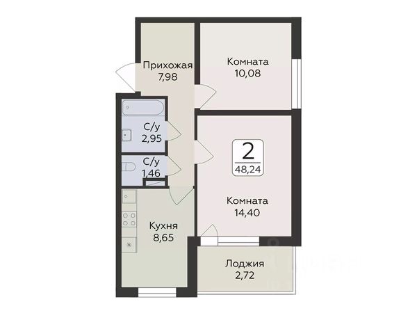 - Жилая - 43.5 м2