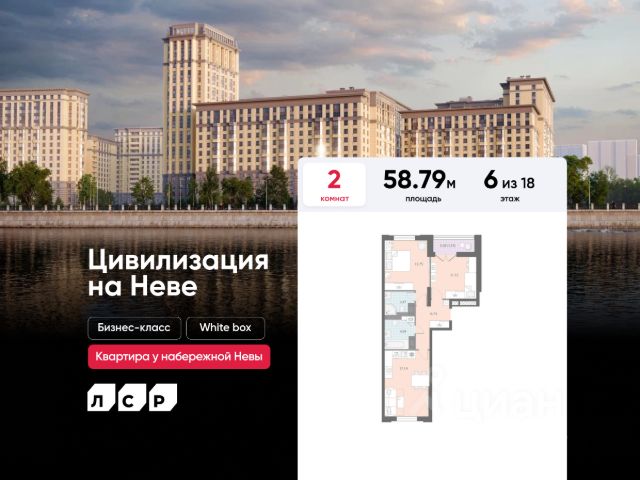 Продажа 2-комнатных квартир на 6 этаже в районе Невский в Санкт-Петербурге