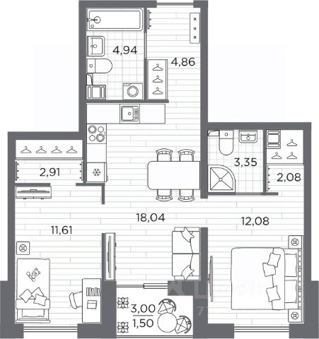 2-комн. квартира от застройщика с отделкой в ЖК "Сезоны" на 6 этаже. Общая площадь: 61.37 кв.м., жилая: 23.69 кв.м., площадь просторной кухни-столовой: 18.04 кв.м. Комнаты изолированные, все окна выходят на одну сторону. В квартире одна лоджия, два совмещенных санузла. Высота потолков 2.76 м. Квартира находится в корпусе 622. Дом монолитный, одноподъездный, высотой 25 этажей. На этаже 10 квартир. В подъезде 2 пассажирских и 1 грузовой лифт. Начало строительства - 4 квартал 2025 года. Окончание строительства - 2 квартал 2028 года. Оформление сделки по договору долевого участия. Видовой жилой комплекс "Сезоны" от ГК ПСК возводится в одном из самых востребованных и престижных районов Санкт-Петербурга - Приморском, рядом с Суздальским и Выборгским шоссе. Такое расположение обеспечивает удобный выезд в разные части города, сочетая городской комфорт с близостью к природе. Всего в 50 метрах находится природный заказник "Новоорловский" и речка Каменка, а в пешей доступности - Суздальские озёра. Приморский район отличается развитой социальной и транспортной инфраструктурой. Здесь расположены крупные торговые и деловые центры, современные спортивные объекты, медицинские учреждения, магазины, кафе и рестораны. Комплекс включает четыре корпуса, ввод которых в эксплуатацию запланирован на 2028 год. Проект и прилегающий микрорайон разработаны в соответствии с концепцией "15-минутного города", при которой вся необходимая инфраструктура находится в шаговой доступности. В ближайшем окружении - две школы, пять детских садов, магазины, кафе, салоны красоты, банковские отделения и пункты выдачи заказов. Также предусмотрены два четырёхъярусных паркинга с лифтами на 288 машиномест. О застройщике ГК ПСК - один из крупнейших девелоперов Санкт-Петербурга с более чем 18-летней историей. Компания реализует проекты во всех сегментах недвижимости - от премиальных жилых комплексов до масштабных кварталов комфорт-класса и апарт-отелей. По данным портала ЕРЗ.РФ, ПСК входит в ТОП-3 крупнейших застройщиков Санкт-Петербурга по объёму текущего строительства. Портфель компании превышает 3 млн кв. м жилой и коммерческой недвижимости. Все объекты сдаются строго в срок и отличаются высоким уровнем архитектурных и инженерных решений. #2TOlz5