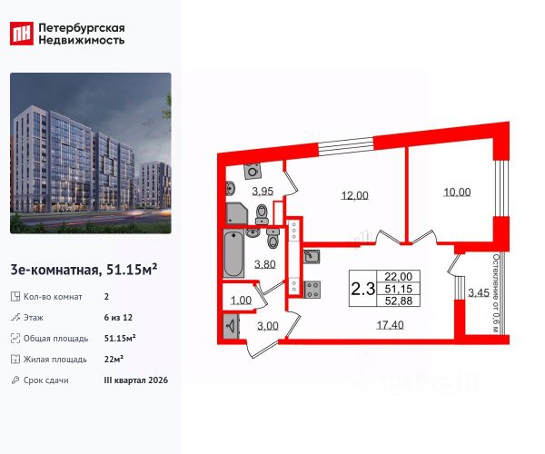 Продается уютная 2-комнатная квартира от застройщика в жилом комплексе "Бионика Заповедная" в динамичном Приморском районе. До метро можно добраться на транспорте всего за 11 минут. Мастер-спальня с собственной ванной комнатой. Самое приватное пространство в вашей квартире. Уникальная, функциональная европланировка, большая кухня-гостиная 17.4 м², вместительная прихожая 3 м². Общая площадь квартиры - 51.38 м², жилая 22.07 м², высота потолка 2.77 м. Квартира продается с отделкой "Норд Лайн светлый плюс". Что особенного в ЖК "Бионика Заповедная"? • Оазис в городе 3 минуты пешком до Новоорловского заказника (140 ГА) • Захватывающие виды из окон на хвойный лесопарк • Всесезонный "Заповедный парк" во дворе площадью 23000 кв.м. • 5 единых входных групп с авторским дизайном и лаундж-зонами, сити-виллы на первых этажах с палисадниками и высотой потолков до 4 м • Места притяжения: фонтан "Бионика", спортивный кластер со скейт-парком, фотозоны с арт-объектами