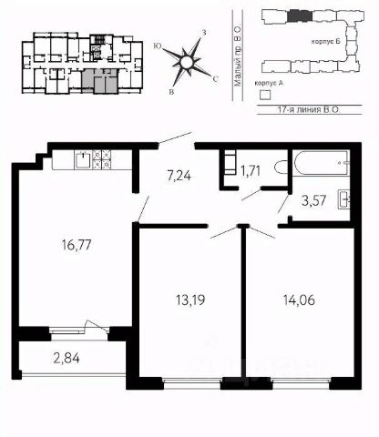 Просторная двухкомнатная квартира в Клубный квартал "Ассамблея" на 6 этаже. Квартира без отделки, полностью готова к ремонту. Общая площадь: 70.19 кв.м., жилая: 28.32 кв.м., площадь просторной кухни-столовой: 16.01 кв.м. Квартира - распашонка, без проходных комнат, окна выходят на paзные стороны дома. В квартире одна лоджия, два совмещенных и один раздельный санузел. Высота потолков 3.0 м.