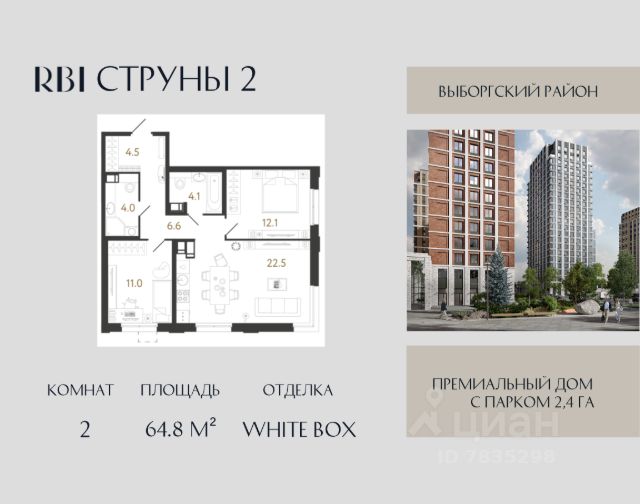 Квартира с двумя спальнями в комплексе "Сампсониевский 32" от LEGENDA на 6 этаже.