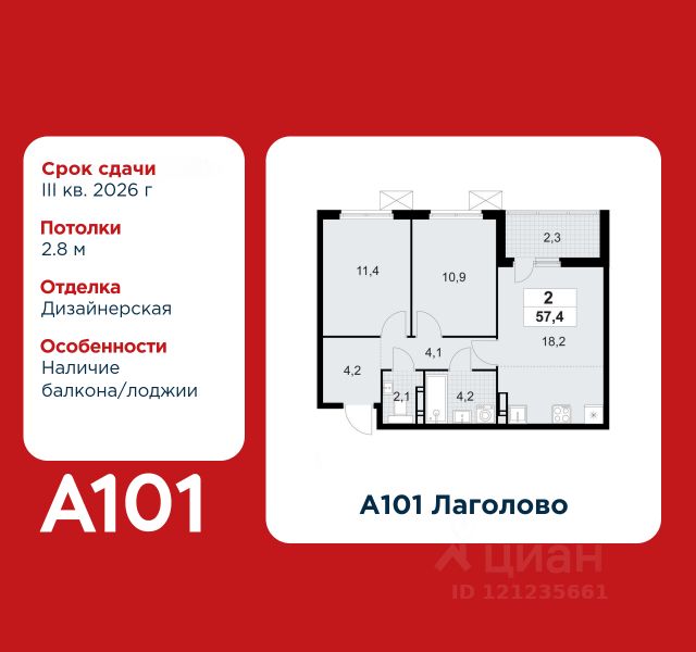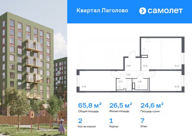Старт продаж! 2-комнатная квартира площадью 46.45 в ЖК "А101 Лаголово" на 7 этаже. Квартира без отделки. Вид из окна на улицу. В квартире 1 санузел. Высота потолков 2.74 м. Предложения от застройщика на ноябрь 2025: - Гибкая рассрочка 20 000 руб/мес. и первым взносом 10%. ОТДЕЛКА Квартира передается без отделки. Благодаря тому, что в данном типе отделки стены не возводятся, вы сможете создать удобную планировку и самостоятельно организовать зонирование комнат. ПАРАДНАЯ. В каждой парадной предусмотрены места для хранения велосипедов и колясок, гостевой санузел и удобная зона ожидания для гостей. ДВОРЫ И ОКРУЖЕНИЕ. Просторные дворы безопасны для детей, так как свободны от машин, закрыты от посторонних и постоянно находятся под видеонаблюдением. Во дворах создается разнообразная среда для детей всех возрастов: детские площадки с батутами, тактильными дорожками и игровыми комплексами. Для активного отдыха - воркаут-площадки, столы для пинг-понга и газоны для занятий йогой. Во дворах есть и тихие уголки - зеленые гостиные с уличной мебелью, где можно поработать на свежем воздухе или отдохнуть в тишине. Из внутренних дворов комплекса можно выйти на пешеходный бульвар длиной около 900 метров. Здесь будет организовано полноценное общественное пространство с амфитеатром, уличным кафе, ручьем, фонтаном и множеством мест для отдыха и игр. Большую часть бульвара займут благоустроенные зеленые зоны и теневые сады из десятков видов деревьев и кустарников, многолетних цветов и трав, которые будут радовать глаз круглый год. "А101 Лаголово" - современный город у подножия знаменитых Дудерговских высот, в объятиях чистейших озер и зеленых живописных массивов, наполненный всем необходимым для счастливой жизни. ИНФРАСТРУКТУРА. Мы занимаемся комплексным освоением территории. Наш приоритет - доступность всех сервисов для счастливой жизни. 1. Лаголово-город 15-ти минутной доступности. Вся необходимая инфраструктура: магазины, салоны красоты, образовательные учреждения, медицинские центры находятся в 15-ти минутах пешей прогулки от любой точки жилого комплекса. Это позволяет не тратить время на долгие перемещения. 2. Представьте идеальный город, где ребенок может спокойно играть, а пожилой человек наслаждаться заслуженным отдыхом. Жилая среда нашего комплекса может комфортно использоваться как 8-летним ребенком, так и 80-летним пожилым человеком. Дома, улицы, общественные пространства, тротуары спроектированы с заботой о людях разных возрастов. 3. Мы активно развиваем авторскую образовательную экосистему "Лёрнити". Она включает строительство 8 современных детских садов (2000 мест) и 3 школ (2945 учащихся). Мы учим родителей гармонично общаться с детьми, помогаем малышам подготовиться к школе, а подросткам - выбрать будущую профессию и развить таланты. Не хватает средств на покупку кладового помещения? Оформите ипотеку на квартиру и добавьте к ней часть стоимости кладовой. ЗАСТРОЙЩИК ГК "А101" - крупный инвестиционно-строительный холдинг, занимает 6-е место