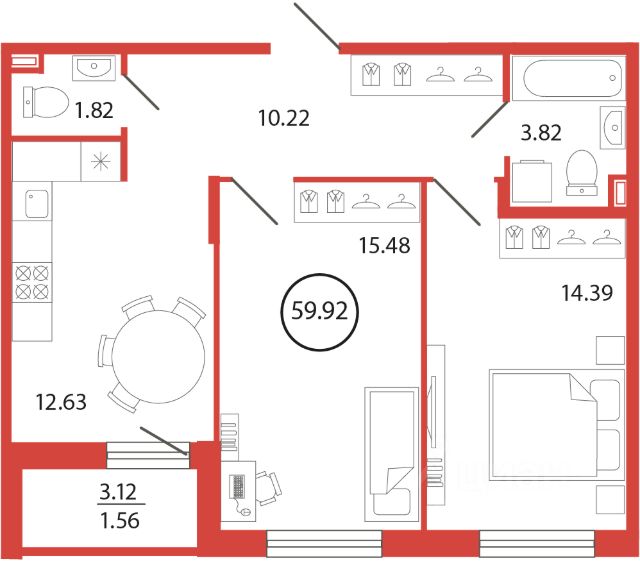 Продается двухкомнатная квартира в жилом комплексе "Высота" от ГК СТОУН нa 3 этаже. Общaя площадь cоcтaвляeт 62.14 кв. м.