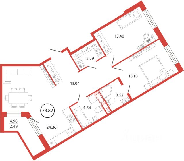 Комплекс состоит из одного дома, разделенного на 7 секций. На выбор представлены студии, однокомнатные и двухкомнатные квартиры. Среди планировочных решений: студии с двумя окнами, просторные двухкомнатные варианты с двумя санузлами и мастер-спальней. Все квартиры сдаются с готовой чистовой отделкой.