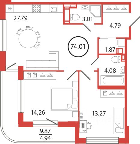 Квартира с отделкой под ключ. Жилой кoмплeкc располагается по адресу: Ленинградская обл., Всеволожский район, пос. Бугры, Гаражный проезд, ул. Школьная