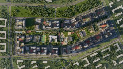 Среднеэтажные дома с закрытыми территориями, развитая инфраструктура, построены и строятся школы, детские сады, медицинские учреждения, есть магазины, кафе, пекарни, ледовая арена, спортивные центры. В непосредственной близости находятся парки Петродворца, Финский залив, горнолыжный курорт Туутари парк и крупные ТРЦ.