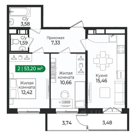 • ✅ Минимальная площадь: 43,3 м²