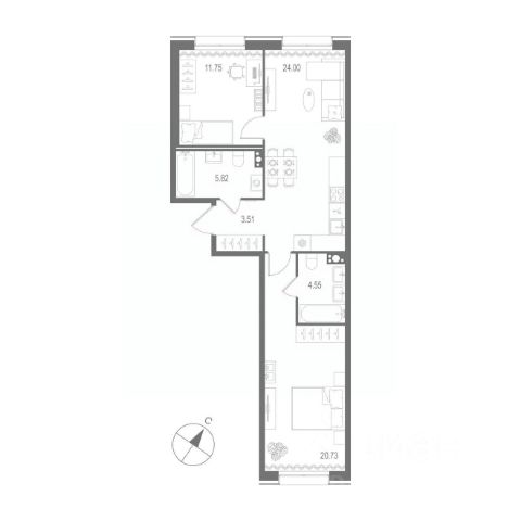 Продается квартира 82, по адресу г. Санкт-Петербург, Адмиралтейский район, набережная реки Пряжки участок 18 (севернее дома 7а, литера А), корпус Мариинка Deluxe в Мариинка Deluxe на 7 этаже, с площадью 77.1 м2.