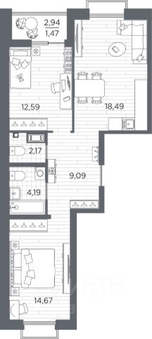 Квартира расположена на 7 этаже, площадь с балконом 63,6 кв м, без балкона - 59,3 кв м, кухня 12,6 кв м, две изолированные комнаты, два санузла. Окна выходят в тихий, закрытый двор (без авто). 4 квартиры на этаже - это дополнит. гарантия приватности. В каждой квартире предусмотрены клапаны индивид.вентиляции, в доме установлены фильтры очистки воды до состояния питьевой, Wi-Fi (Интернет, ТВ), регулир. радиаторы системы отопления. Дополнительно установлен фильтр тонкой очистки питьевой воды. Отделка квартиры выполнена по итальянскому дизайн-проекту (коллекция Vanilla). Высота потолков 3,06 м. Современный кухонный гарнитур, имеется вся бытовая техника, необход. для комфортной жизни: холодильник с морозил. камерой Bosch, микроволн. печь, стирал. машина, огромный телевизор Toshiba, встроенные духовой шкаф Electrolux, посудом. машина, варочная поверхность, вытяжка. Имеется спец. шахта под систему кондиционирования. Балкон с полностью сдвигаемым безрамным остеклением и подогреваемым полом (керамогранит) и освещением (лаундж зона). Два санузла (в каждом из которых имеется унитаз и мебель), гигиенич.душ, в ванной комнате - акриловая ванна, подогреваемый пол, стирал.машина, мебель. В комплексе можно приобрести подземное парковочное машиноместо (лифт спускается в подземный паркинг).