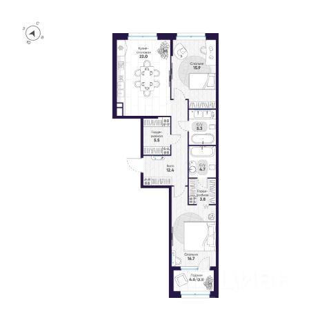 2-комн. апартаменты с европланировкой от застройщика в ЖК "Северная корона" на 7 этаже. Апартаменты без отделки, после выдачи ключей можно делать ремонт. Общая площадь: 307.3 кв.м., жилая: 95.9 кв.м., суммарная площадь гостиной-столовой с кухонной зоной: 102.3 кв.м. Европланировка, кухня-гостиная - идеальный вариант для тех, кто любит часто принимать гостей. Квартира без проходных комнат, окна выходят нa три cтopoны дома. В апартаментах два балкона, два совмещенных санузла. Наличие террасы размером 74.6 кв.м. в квартире открывает возможность для обустройства дополнительной площади. Высота потолков 3.3 м. 3 корпус дома "Северная Корона" представляет собой реконструкцию исторического здания доходного дома М.К. Покотиловой. Доходный дом строился в неоклассическом стиле с рустированными пилястрами, балюстрадой, барельефами в виде путти, ваз и сатиров, а также маскаронами львов в замковых камнях арок первого этажа. Основное здание было четырехэтажным, а боковые крылья трехэтажными. Данное решение ступенчатой композиции было продиктовано близостью Карповского переулка более высокую часть архитектор увел вглубь участка. Конструкция здания производилась согласно канонам неоклассической архитектуры: массивные стены достигают толщины в 1 метр, а высота потолков доходит до 3,4 метра. Кроме того, на первом и втором этажах выполнены сложные окна двойные и тройные. Они состоят из двух и трех оконных проемов, которые объединены общими декоративными элементами в виде барельефов. Апартаменты находятся в корпусе 3. Дом монолитно-блочный, одноподъездный, высотой 7 этажей. На этаже 4 квартиры. В подъезде 3 грузовых лифта. На сегодняшний день строительство окончено, дом сдан в 4 квартале 2023 года. Оформление сделки по договору купли-продажи. В шаговой доступности от жилого комплекса имеются станции метро (расстояние по прямой): "Петроградская" (500 м), "Чкаловская" (1.3 км), "Горьковская" (1.7 км), "Чёрная речка" (1.7 км), также недалеко от этого корпуса расположены станции метро: "Чернышевская", "Спортивная". Премиальный жилой комплекс "Северная корона" расположился в парадной части Петроградской стороны на пересечении ее главного проспекта — Каменноостровского и набережной реки Карповки. Двухсотметровое парадное лобби, дизайнерский ландшафт, собственная фитнес-студия, парадная гостиная для встреч и переговоров, игровой клуб для детей. А также: системы очистки и подготовки воды и воздуха, консьерж-сервис, бесключевой доступ, помещения для ожидания и многое другое. Архитектура премиального дома "Северная корона" — это современное воплощение и новое развитие архитектуры северного модерна. Особенность и уникальность дома в его протяженности вдоль реки Карповки. Фасад исключает монотонность, линии интегрированы в канву курдонера и внутренних общественных пространств, обращённых как в сторону Каменноостровского проспекта, так и Иоановского монастыря. Все квартиры в полной мере можно назвать видовыми они открыты историческому окружению и ландшафтн