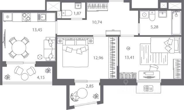 В квартире есть просторная лоджия, где можно обустроить зону отдыха.