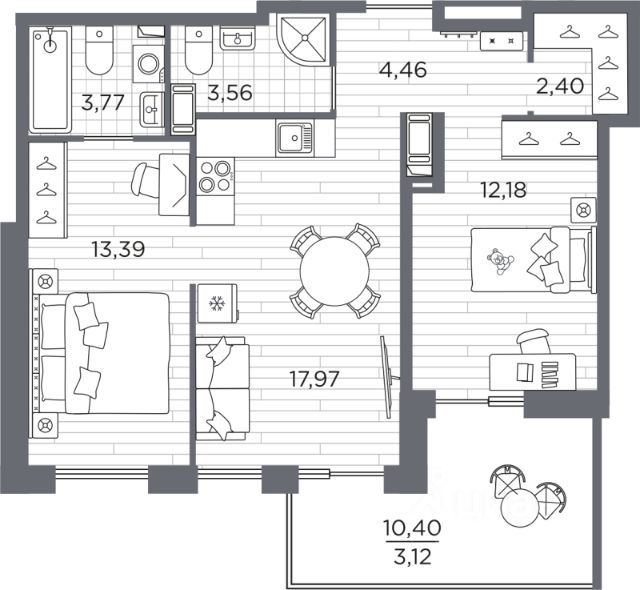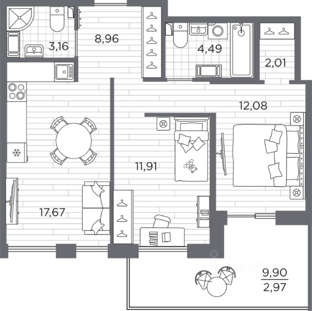 "Продается квартира площадью 56.05 кв. м с предчистовой отделкой. Квартира расположена на 7 этаже 8 этажного дома, в жилом комплексе комфорт-класса "Финский Квартал". "Финский квартал" - это уникальный проект комфорт-класса для тех, кто хотел бы жить на природе, но при этом находиться вблизи Северной столицы. Расположенный в окружении одного из самых крупных парков Ленобласти - Лахтинского, проект предлагает своим жителям доступную инфраструктуру, комплексное благоустройство территории, 6 секций переменной этажности с современной архитектурой, которая гармонично дополнит район и будет радовать проживающих еще много лет. Найдите свою идеальную квартиру в ЖК "Финский Квартал"! Расположение Пешком: - 5 мин. до детского сада и супермаркета; - 8 мин. до остановки "Зеленая улица"; - 10 мин. до лесопарковой зоны. На автомобиле: - 3 мин. до Приозерского шоссе; - 10 мин. до Выборгского шоссе; - 12 мин. до КАД; - 30 мин. до ст. метро "Проспект Просвещения". Благоустройство - большой яркий двор с ландшафтным дизайном; - живая изгородь, кустарники и хвойники; - умное зонирование тихих и активных площадок; - сквер для прогулок и отдыха; - изумрудные лужайки для пикников; - дорожки для пешеходов и велосипедистов; - большие игровые площадки; - мягкое покрытие для безопасности детей; - тренажеры, турники и веревочные комплексы; - пространство только для пешеходов - без машин; - наземная парковка за пределами двора; - специальные площадки для выгула питомцев; - светлые дизайнерские холлы; - светопрозрачное остекление и большие окна; - декоративная подсветка парадных; - колясочные помещения для комфорта родителей; - места для хранения велосипедов и самокатов. Окружение - свежий воздух: парк усадьбы "Осиновая Роща", Лахтинский парк, лесопарк "Курортный", Левашовский заказник, Ново-Кавголовский лесопарк; - водные объекты: Сестрорецкий Разлив, пляжи у Тохколодского и Большого озер, залив Сярюнлахти; - инфраструктура: 2 детских сада, школа, кафе, продуктовый супермаркет, больница; - для крупных покупок: ТРЦ "Китай-Город", "Мега-Парнас"", "Гранд Каньон"; - активный отдых: горнолыжные комплексы "Охта-Парк" и "Токсово", конный клуб "Осиновая Роща", ФОК "Норус"."