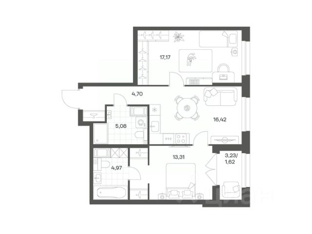 Продается квартира площадью 63.27 м² на 7 этаже 1 секции в Речной квартал от компании ГК "ТРЕСТ". Площадь кухни 16.42 м². Семейный жилой комплекс комфорт-класса "Речной квартал" от Группы компаний "ТРЕСТ" расположен в Невском районе Петербурга на пересечении Октябрьской набережной и Русановской улицы. Первая очередь квартала состоит из трёх корпусов, расположенных лучеобразно, чтобы максимально использовать естественное освещение и обеспечить видовые точки на локацию. Проект выделяется современными архитектурными решениями и дизайном. Концепция развития и благоустройства придомовой территории разделена на зоны отдыха, досуга и игровые площадки с учетом возраста и потребностей детей и взрослых. Квартал рассчитан на семейных покупателей, поэтому здесь нет студий: только одно-, двух- и трёхкомнатные квартиры. В проекте представлены квартиры с кухнями-гостиными, мастер-спальнями, гардеробными и кладовыми. "Речной квартал" - современный жилой комплекс с разнообразным благоустройством придомовой территории, просторными европланировками, закрытой охраняемой территорией и подземными паркингами. На территории комплекса уже функционирует детский сад на 110 мест. Также в квартале будет построена общеобразовательная школа на 475 мест с бассейном и стадионом. Открытие школы запланировано на 2029 год. Квартиры в ЖК "Речной квартал" можно приобрести с готовой отделкой от застройщика. Для покупателей квартир предусмотрено два варианта чистовой отделки "Ваниль" и "Шоколад". Чистовая отделка в квартирах ЖК "Речной квартал" предполагает монтаж натяжных потолков, укладку ламината, оклейку стен обоями под покраску, установку светильников и межкомнатных дверей. При отделке новой квартиры применяются качественные, натуральные и экологичные материалы, монтируется стильная импортная сантехника европейских брендов. В объявлении указана стоимость квартиры при 100% оплате. При других формах оплаты - базовую стоимость квартиры уточняейте на официальном сайте компании или у менеджера отдела продаж. Застройщик АО "Специализированный застройщик "Строительный трест".
