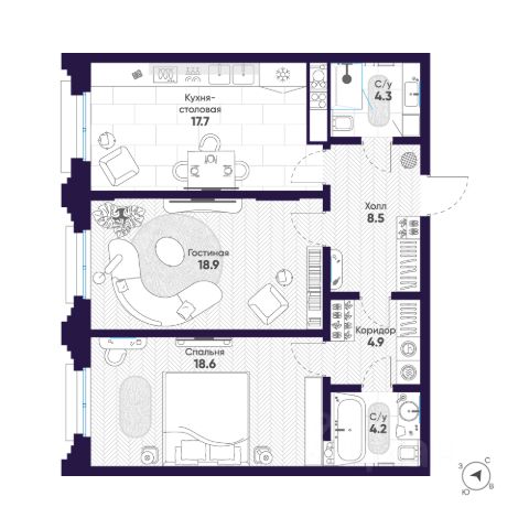 *** По ФAKTу двуxкомнатнaя кваpтиpa c cобственной кухней, сaнузлoм, прихoжeй!