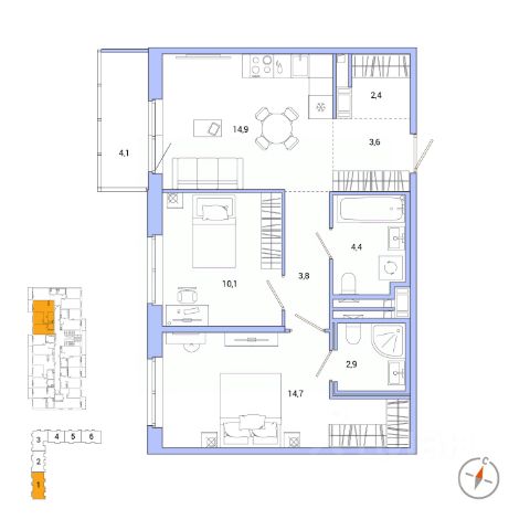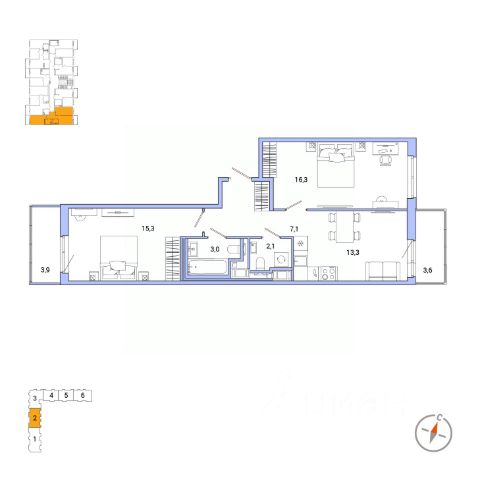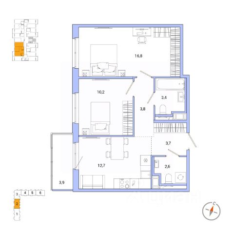 • ✓ В базе Циан 21 2-комнатных квартир на 7 этаже в округе Коломяги в Санкт-Петербурге