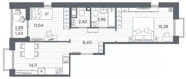 Продается 2-комн. квартира с предчистовой отделкой в ЖК "RESPECT" на 7 этаже. Общая площадь: 55.08 кв.м., жилая: 23.32 кв.м., площадь просторной кухни-столовой: 15.05 кв.м. Комнаты изолированные, все окна выходят на одну сторону. В квартире один балкон и одна лоджия, два совмещенных санузла. Терраса представляет собой роскошную зону отдыха для проведение вечеров в кругу семьи и друзей или организация вечеринок. Высота потолков 2.7 м. Квартира будет сдана с отделкой WHITE BOX, в которую включены следующие виды работ: - заливка стяжки; - установлена система отопления квартиры; - подготовлены потолки; - все стены выровнены, загрунтованы и отштукатурены; - электрическая проводка разведена по комнатам. Квартира будет готова к чистовой отделке. Квартира находится в корпусе 6. Дом монолитный, одноподъездный, высотой 13 этажей. На этаже 8 квартир. В подъезде 1 пассажирский и 1 грузовой лифт. Окончание строительства - 4 квартал 2026 года. Оформление сделки по договору долевого участия. В шаговой доступности от жилого комплекса имеются станции метро (расстояние по прямой): "Лесная" (800 м), "Площадь Мужества" (1.4 км), "Выборгская" (1.9 км), также недалеко от этого корпуса находятся станции метро: "Академическая", "Политехническая". Жилой квартал "RESPECT" строится на Полюстровском пр, 87, в одной из самых востребованных локаций Петербурга. В 10 минутах пешком - метро "Лесная" и в 10 минутах на транспорте - Петроградская сторона. Высота домов от 7 до 13 этажей. Квартиры сдаются с отделкой white box и с чистовой отделкой. На территории Respect строится школа на 1125 учащихся и детский сад на 240 мест. Запроектированы собственная газовая котельная, закрытая территория, дворы без машин и подземные паркинги с лифтами. В проекте предусмотрены трапециевидные балконы или остекленные лоджии, которые, с одной стороны, исключают монотонность фасада, являясь декоративными элементами, с другой дополнительным функциональным пространством в квартирах. Цветовая гармония фасадов каждого дома раскрывает характер квартала. Коричневый цвет клинкерного кирпича со структурой водяных штрихов — цвет уюта и безопасности, сдержанности и надёжности. Вентилируемые фасады облицованы клинкерным кирпичом. Его высокая прочность позволяет давать 100 лет гарантии на этот материал. Водопоглощение клинкерного кирпича составляет менее 5%, за счет чего у него высокая теплопроводность и прочность. В квартале запроектированы внутренние закрытые территории дворов домов без доступа автомобилей и безбарьерная среда для велосипедистов и колясок. Предусмотрены IP-домофония с функцией дистанционного открывания калиток и парадных, а также дистанционный сбор показаний счетчиков и мобильное приложение для жителей. Для безопасности жителей квартала - круглосуточное видеонаблюдение и служба охраны. В каждой квартире предусмотрены внешние корзины для кондиционеров. Вся территория квартала будет связана единой концепцией благоустройства, разработанной ландшафтным бюро L.BURO. На экспл