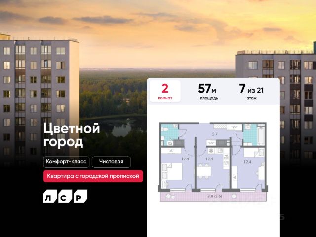 Цена действует при 100% оплате и на определенные ипотечные программы. Подробности — в отделе продаж по телефону. Продается 2-комнатная квартира в ЖК "Пейзажный квартал" на 7 этаже. Общая площадь составляет 50.50 кв. м. Квартира с чистовой отделкой. Жилой комплекс "Пейзажный квартал" располагается по адресу Санкт-Петербург, Красногвардейский Вдоль леса и рядом с рекой Охта. К 2026 году на берегах реки Охты будет создан Пейзажный парк с летними экотропами и зимними горками для тюбингов, скейт-парком и летним кинотеатром. Расположение: • 15 минут на авто до КАД; • 20 минут на авто до станций "Гражданский проспект" и "Академическая"; • 20 минут до ж/д станции "Ручьи"; Небольшой уютный квартал является частью масштабной застройки ЖК "Цветной город", и в то же время стоит обособленно от шумных массивов. Квартал граничит с новейшим объектом городской экосистемы - Пейзажным парком. Соседние кварталы уже застроены и заселены, поэтому здесь нет проблем с привычной городской инфраструктурой - работают детские сады и школы, открыты магазины и кафе, фитнес-клубы, студии красоты и пространства для творчества и отдыха. Преимущества: • Жизнь вблизи природы, но с городской пропиской; • Система "Умный дом" (в т.ч. управление домофоном со смартфона); • Сквозные парадные с колясочными помещениями; • Детский сад на 170 мест и школа на 300 учеников на территории ЖК; • Двор без машин. Успейте приобрести квартиру на выгодных условиях! Чтобы узнать подробности, обращайтесь за консультацией по телефону.
