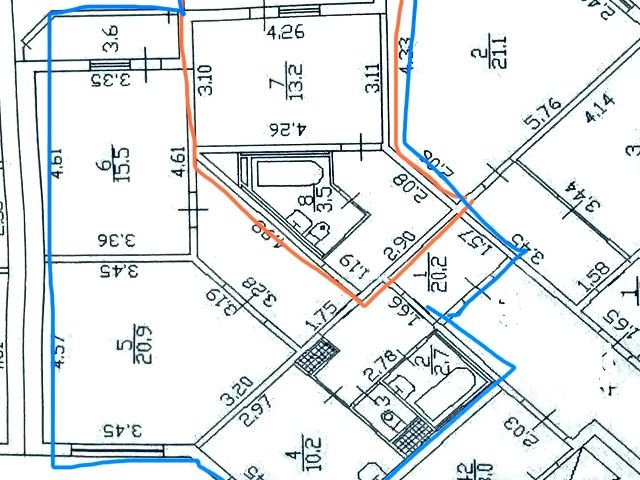 В квартире есть совмещенный санузел с водонагревателем (на случай отключения горячей воды), что удобно для семьи.