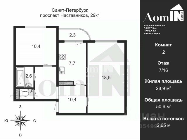Вашему вниманию предлагается прекрасная двухкомнатная квартира площадью 5,6 кв.м.