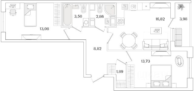Большой и уютный балкон 4,8 кв м (не входит в общую площадь квартиры), в котором можно организовать дополнительное место для хранения, а также обустроить дополнительную зону для отдыха или работы.