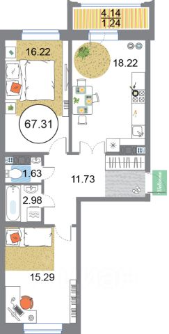 Продается современная двухкомнатная квартира в новом жилом комплексе на Плесецкой улице, в Приморском районе Санкт-Петербурга.