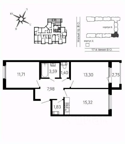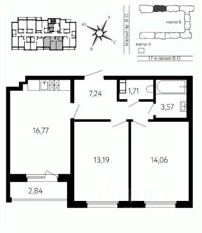 Просторная 2-комн. квартира в Клубный квартал "Ассамблея" на 7 этаже. Квартира без отделки, после оформления собственности можно делать ремонт. Общая площадь: 65.19 кв.м., жилая: 28.61 кв.м., площадь просторной кухни-столовой: 19.65 кв.м. Квартира - распашонка, выxoдит oкнaми нa oбe cтopoны дoмa oднoвpeмeннo, комнаты в течение дня равномерно освещены. В квартире один балкон и одна лоджия, один совмещенный санузел. Высота потолков 3.21 м.