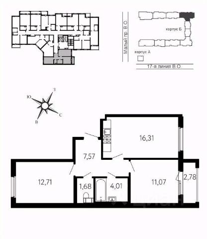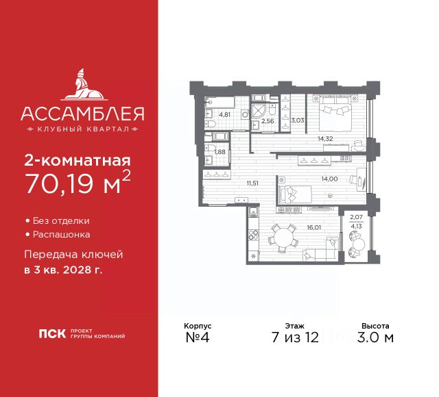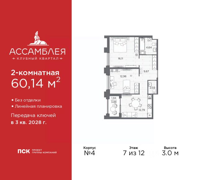Дом монолитный, двухподъездный, высотой 7 этажей. Квартира находится в 1-й секции в корпусе 1. На этаже 4 квартиры. В подъезде 1 грузовой лифт. Начало строительства - 2 квартал 2025 года. Окончание строительства - 3 квартал 2028 года. Оформление сделки по договору долевого участия.