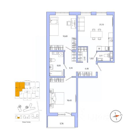 Продаётся 2 комнатная квартира 51 в ЖК IQ Гатчина, 5 оч., к. 3