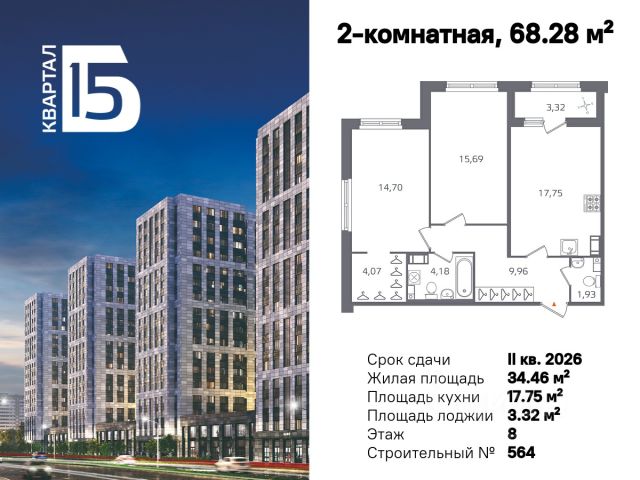 Площадь квартиры 48,7 кв.м. + балкон 4,8 кв.м. Кухня 8 кв.м., изолированные комнаты 17,7 и 12,6 кв.м., с выходом на балкон. Раздельный санузел. Просторная прихожая позволит организовать вместительные системы хранения. Есть встроенный шкаф и кладовка.