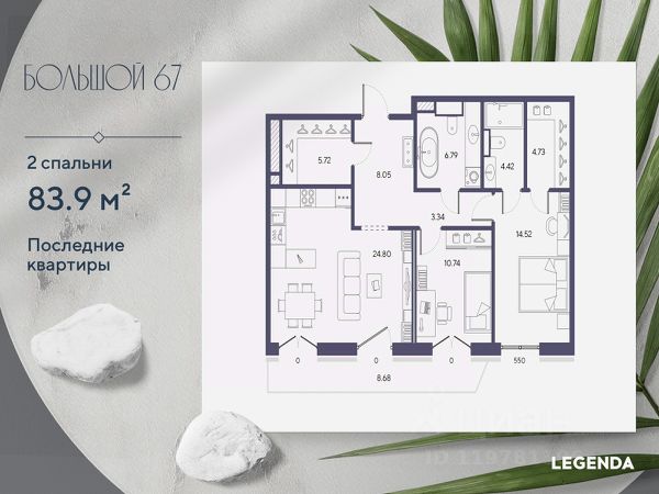 Спешите забронировать по этой цене! Срок предложения ограничен! Стоимость квартиры указана со скидкой, ваша экономия составит 1,094,878 RUB. Звоните, мы вам все подробно расскажем! Продается двухкомнатная квартира от застройщика с предчистовой отделкой в ЖК "Новая Земля" на 8 этаже. Общая площадь: 58.96 кв.м., жилая: 26.56 кв.м., площадь просторной кухни-столовой: 19.8 кв.м. Квартира угловая, идеально подойдет любителям тишины и панорамных видов. В квартире два совмещенных санузла. Высота потолков 2.85 м. Дом монолитный, многоподъездный, высотой 16 этажей. Квартира находится в 1-й секции в корпусе 1.2. На этаже 5 квартир. В подъезде 1 пассажирский и 1 грузовой лифт. Окончание строительства - 4 квартал 2028 года. Оформление сделки по договору долевого участия. Новая Земля — проект LEGENDA в локации морской набережной Васильевского острова, где уже сегодня формируется многообещающее и перспективное место для жизни и инвестиций. Проект состоит из двух очередей, расположенных в непосредственной близости, но имеющих идеологически разный подход к проектированию и ассортиментному предложению. Первая очередь, где квартиры уже в продаже, наполнена компактными функциональными и эстетичными сьютами в комплектации TechnoBox, подходящими для активной аудитории, предпочитающей больше времени проводить в городе. Транспортная доступность обеспечена благодаря близости выезда на ЗСД, который позволяет быстро добраться как до центра города, так и до других районов Санкт-Петербурга. Архитектурная концепция проекта задает новый стандарт для этой локации. Дизайн фасадов, большие окна без импостов, современные инженерные решения — всё это создаёт атмосферу комфортного и эстетичного пространства, отвечающего самым высоким требованиям. В проекте представлена новая линейка планировочных решений, созданных по принципам отельного проектирования. Сьюты от LEGENDA — это уникальная работа с пространством, сочетающая сверхфункциональность и удобство, чистоту линий и стилистический минимализм. Планировочные решения в рамках первой очереди проекта будут поделены на несколько сегментов, отличающихся размерами, функциональной наполненностью и отвечающих потребностям различных жителей проекта.