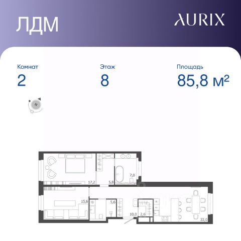 Продается 2-к квартира без отделки в ЖК "ЛДМ". Общая площадь квартиры — 85.8 кв. м, этаж 8 из 9. Тип дома — монолитный. Цена указана при 100% оплате. Описание из материнского фида