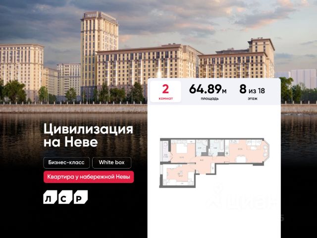 Продаётся 2-комнатная квартира в ЖК "Цивилизация на Неве" на 8 этаже. Общая площадь составляет 65.62 кв. м. Квартира с white box отделкой. Жилой комплекс "Цивилизация на Неве" располагается по адресу Санкт-Петербург, Невский. "Цивилизация на Неве" - видовые дома бизнес-класса, расположенные вдоль набережной Невы, всего в 7 км от исторического центра. Жилой комплекс идеально выражает особый дух, свойственный знаменитым просторным кварталам постройки сталинской эпохи в Москве и на Московском проспекте в Петербурге. Расположение: • 15 мин на авто до Невского проспекта; • 15 мин на авто до Московского вокзала; • 5 мин на авто до станции метро "Улица Дыбенко"; • 14 мин (7 км) до КАД. Уникальный дизайн входных зон, закрытая территория, видеонаблюдение и охрана, подземный паркинг с лифтом и другие особенности проекта отвечают заявленному классу. В каждом дворе предусмотрено озеленение по индивидуальному ландшафтному проекту с благородными растениями и кустарниками. Преимущества: • Закрытая территория с видеонаблюдением; • Подземный паркинг с лифтом; • Детская площадка на приватной безопасной территории; • Несколько детских садов и школ; • Инфраструктура шаговой доступности на первых этажах корпусов. Успейте приобрести квартиру на выгодных условиях! Чтобы узнать подробности, обращайтесь за консультацией по телефону.