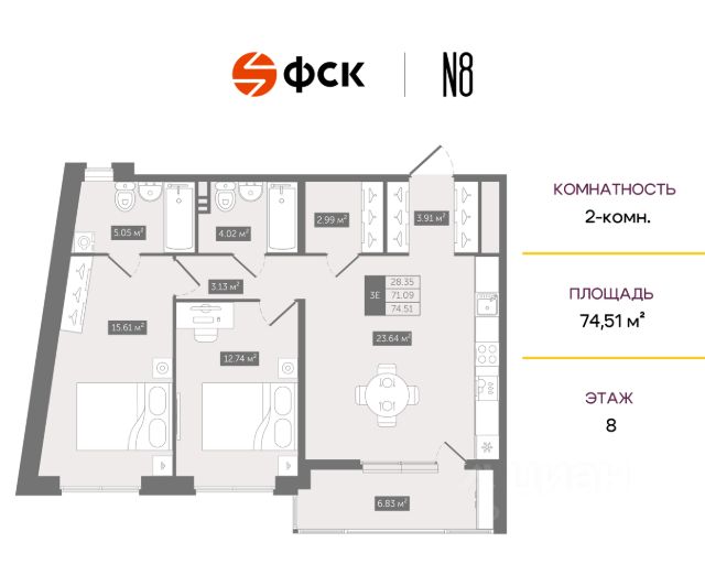 Прямая продажа от застройщика — только в этом месяце. 2-к квартира в клубном доме N8 на 8-м этаже. Общая площадь 56,14. Без отделки. Клубный дом N8 — новый статусный проект высокого бизнес-класса от одного крупнейших федеральных девелоперов ГК ФСК. Это камерное пространство в историческом центре Петербурга на тихой Новгородской улице, скрытое в 5 минутах пешком от Невского проспекта и Ратуши. В облике дома отражены характерные черты петербургской исторической архитектуры: фактурная кирпичная кладка песочных оттенков, декоративные вставки и разностилевое остекление. В клубном доме N8 небольшое количество квартир — всего 281, от трех на этаже. Это позволило создать атмосферу приватности и камерности, а еще — воплотить замысел архитекторов, стремившихся наполнить дом квартирами с панорамными видами на город. От премиальных и экологичных материалов до новейших технологий, от современных инженерных систем до планировок "ручной работы", от впечатляющего парадного холла до уютного внутреннего двора: высокие стандарты девелопера гарантируют, что вы будете приятно удивлены уровнем комфорта и визуальной эстетики. В доме запланированы закрытая территория со смарт-доступом, подземный паркинг с доступом на лифте, зоны отдыха для жильцов. Квартир сдаются без отделки, что позволит собственникам квартир реализовать любые дизайнерские идеи.