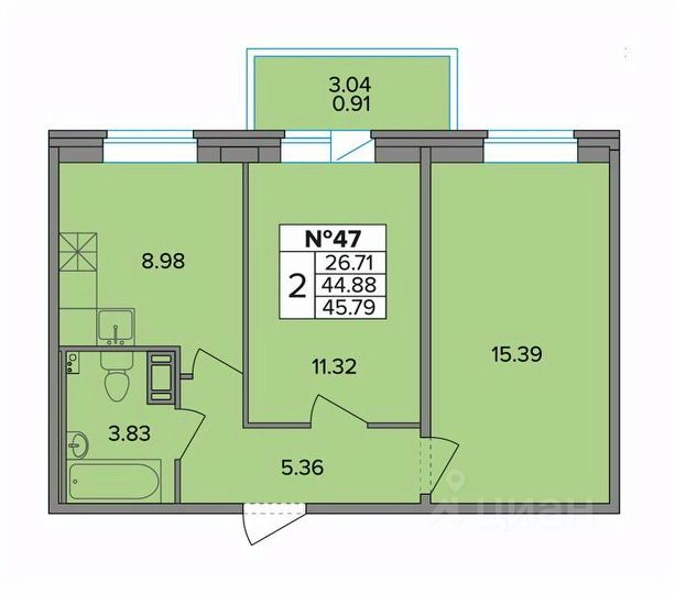 Продаётся 2-комнатная квартира в сданном доме (Ленсоветовский, 19к2 (Корпус 1)), срок сдачи: II-кв. 2025, общей площадью 45.79 кв.м., на 8 этаже. Жилой многоквартирный дом от застройщика "СЗ Смарт".