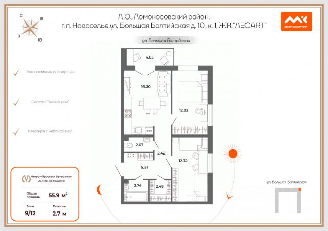 Продаётся 2-комн. квартира площадью 51,08 кв.м на 9 этаже 12 этажного дома (Корпус 4.2, Секция 1) проекта ПИК Таллинский парк. Светлый просторный подъезд на уровне земли, функциональная планировка, большие окна, без отделки. "Таллинский парк" - проект в Ленинградской области, в районе Новоселье. До станции метро "Проспект Ветеранов" - 15 минут на автомобиле, а до КАД можно доехать всего за 4 минуты. "Таллинский парк" включает 16 жилых домов, детский сад и школу. В проекте появится центральный сквер с обильным озеленением, а через весь квартал протянутся широкие пешеходные бульвары. В зелёных дворах-парках будут оборудованы современные детские и спортивные площадки, обустроены места для отдыха. На первых этажах разместятся магазины, кафе и другие сервисы. Проектом предусмотрены персональные кладовые помещения - это доступный, экономичный и удобный способ хранения сезонных и крупногабаритных вещей. Освободите свою квартиру для полноценной жизни. Район Новоселье активно развивается в городском формате: здесь уже работают детские сады, школа и магазины. Для любителей зимних видов спорта открыта круглосуточная ледовая арена. За покупками и развлечениями также можно быстро доехать: 10 минут - и вы в Аутлете Таллинское, гипермаркетах Лента, Леруа Мерлен и Окей. В 10 минутах на автомобиле находится Финский залив, на берегу которого расположились объекты культурного наследия. Рядом - Константиновский парк с отреставрированным дворцом, а чуть дальше расположена усадьба Знаменка. В великолепном Петергофе вы будете уже через 20 минут. Артикул 1026444 (Застройщик ООО "СПЕЦИАЛИЗИРОВАННЫЙ ЗА СТРОЙЩИК "СТРОЙ-ЭКСПЕРТ ") [cn_sbp_1839674]