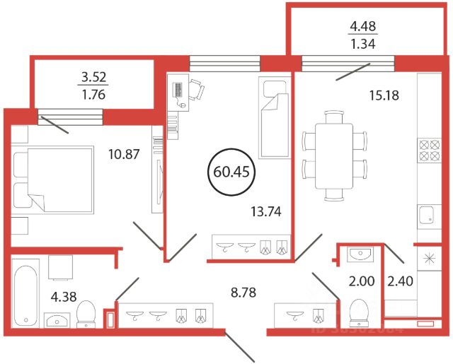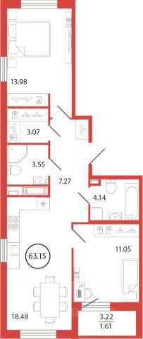 Продаётся 2 комнатная квартира в жилищном комплексе "Энфилд" (корпус Дом 18 секция 4). Общая площадь 59,33 кв. м, площадь комнат 12,82 кв.м, 13,77 кв.м. 2 санузла. Квартира расположена на 9 этаже 12 этажного дома. Срок сдачи корпуса IV квартал 2027 года. Современный жилой квартал "Энфилд" от компании Arsenal объединяет в себе преимущества хорошей экологии и удобного расположения рядом с городом. Квартал расположен на территории Мурино-Бугры, в 10 минутах от метро Девяткино. В состав ЖК "Энфилд" войдет 17 домов высотой до 12 этажей, 14 из них уже построено и сдано. На территории работает два детских сада и школа с углубленным изучением иностранных языков. Квартал славится красивой территорией, пешеходным бульваром с фонтанами, детскими и спортивными площадками, инфраструктурой для отдыха. В 5 минутах ходьбы расположен гипермаркет "Лента", из квартала предусмотрен удобный выезд на КАД.