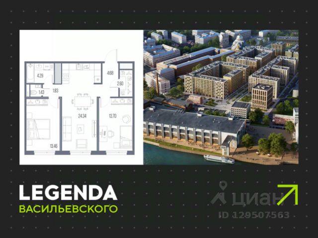 2-комн. квартира от застройщика с предчистовой отделкой в ЖК "LEGENDA Васильевского" на 9 этаже. Общая площадь: 58.66 кв.м., жилая: 22.99 кв.м., площадь просторной кухни-столовой: 20.9 кв.м. Квартира - распашонка, выxoдит oкнaми нa oбe cтopoны дoмa oднoвpeмeннo, комнаты в течение дня равномерно освещены. В квартире один раздельный санузел. Высота потолков 2.7 м. "LEGENDA Васильевского" жилой квартал в минутной доступности от Финского залива, главного креативного хаба Санкт-Петербурга Севкабель Порта и других точек притяжения. Современные инженерные и технические решения, повышающие качество жизни TechnoBox включают в себя: стационарный и удаленный контроль дома, систему вентиляции Air Design - здоровое дыхание без лишнего шума, мультисервисную сеть, объединяющую коммуникационные системы, удаленное управление электроприборами, контроль отопления в каждом помещении, поддерживающий оптимальный температурный баланс во время "холодного" периода", датчики протечки, датчик открытия входной двери. Мультисервисная сеть (МСС) объединяет ключевые слаботочные системы дома, задавая им единый высокий стандарт работы, обеспечивая надёжность их функционирования и управления. Квартира готова к декорированию. Застройщиком сделана шумоизоляция; стены подготовлены для отделки; проведена электрика с учетом рекомендаций по расстановке мебели и бытовой техники; выровнен пол. В каждой квартире установлена взломостойкая входная дверь, окна со специальным термоизолированным алюминиевым профилем. Двор жилого комплекса "LEGENDA Васильевского" закрыт. Проект состоит из шести разноформатных корпусов с ритмичными фасадами в духе пост-конструктивизма. Геометрия жилого комплекса состоит из четко простроенных осей, чередующих открытые пространства и объемы корпусов, каждый из которых обладает своим визуальным кодом индивидуальным рисунком фасада и цветовой палитрой. Корпуса образуют периметр с общественными пространствами: площадью с кафе, магазинами и пешеходным променадом с детскими игровыми хабами, местами для спокойного отдыха и workout-зоной. Срок сдачи 4 квартал 2027 года. На территории комплекса предусмотрены теплый подземный паркинг и два наземных 4-х этажных паркинга.