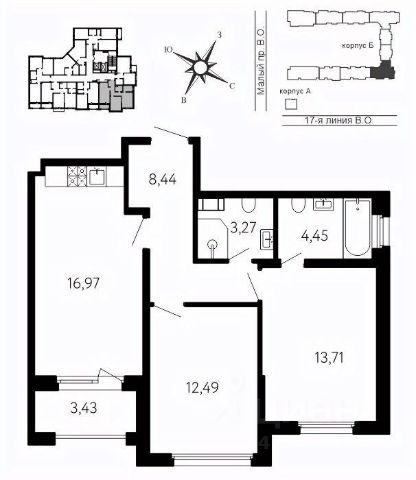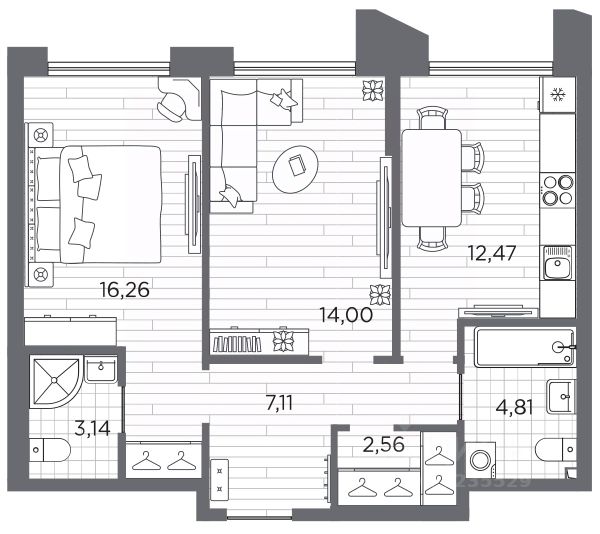 2-комн. квартира от застройщика с предчистовой отделкой в ЖК "LEGENDA Васильевского" на 9 этаже. Общая площадь: 55.23 кв.м., жилая: 23.27 кв.м., площадь просторной кухни-столовой: 19.68 кв.м. Угловая квартира, очень светлая, естественная вентиляция при открытии окон. В квартире один раздельный санузел. Высота потолков 2.72 м. "LEGENDA Васильевского" жилой квартал в минутной доступности от Финского залива, главного креативного хаба Санкт-Петербурга Севкабель Порта и других точек притяжения. Современные инженерные и технические решения, повышающие качество жизни TechnoBox включают в себя: стационарный и удаленный контроль дома, систему вентиляции Air Design - здоровое дыхание без лишнего шума, мультисервисную сеть, объединяющую коммуникационные системы, удаленное управление электроприборами, контроль отопления в каждом помещении, поддерживающий оптимальный температурный баланс во время "холодного" периода", датчики протечки, датчик открытия входной двери. Мультисервисная сеть (МСС) объединяет ключевые слаботочные системы дома, задавая им единый высокий стандарт работы, обеспечивая надёжность их функционирования и управления. Квартира готова к декорированию. Застройщиком сделана шумоизоляция; стены подготовлены для отделки; проведена электрика с учетом рекомендаций по расстановке мебели и бытовой техники; выровнен пол. В каждой квартире установлена взломостойкая входная дверь, окна со специальным термоизолированным алюминиевым профилем. Двор жилого комплекса "LEGENDA Васильевского" закрыт. Проект состоит из шести разноформатных корпусов с ритмичными фасадами в духе пост-конструктивизма. Геометрия жилого комплекса состоит из четко простроенных осей, чередующих открытые пространства и объемы корпусов, каждый из которых обладает своим визуальным кодом индивидуальным рисунком фасада и цветовой палитрой. Корпуса образуют периметр с общественными пространствами: площадью с кафе, магазинами и пешеходным променадом с детскими игровыми хабами, местами для спокойного отдыха и workout-зоной. Срок сдачи 4 квартал 2027 года. На территории комплекса предусмотрены теплый подземный паркинг и два наземных 4-х этажных паркинга.