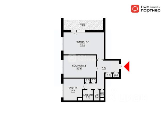 -Общая площадь квартиры БЕЗ УЧЕТА балконов 53.7 м², площадь балконов 10 м², расположена на 9 этаже.