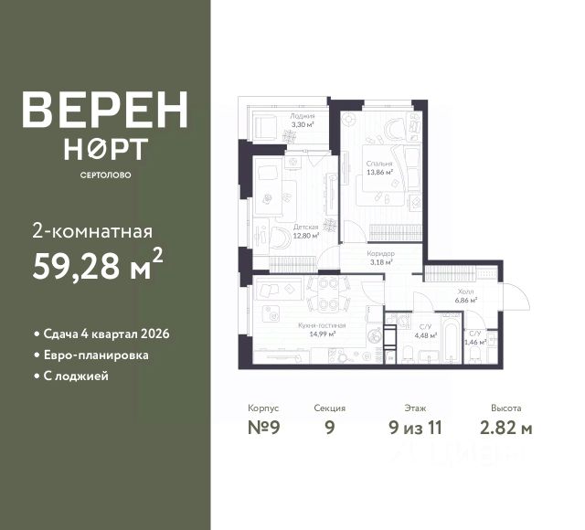 - Просторная кухня (12.0 м²), где ВЫ будете собираться всей СЕМЬЕЙ.