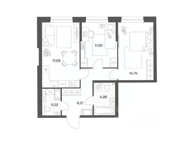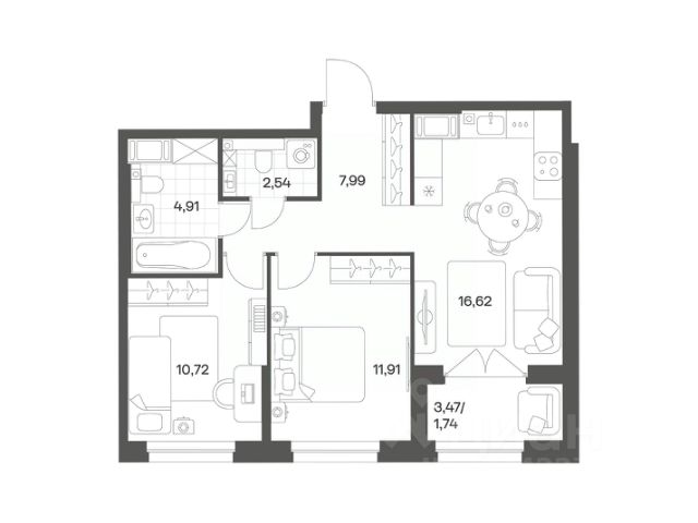 Продается уютная 2-комнатная квартира от застройщика в жилом комплексе "Город звезд" в новом городе на правом берегу Невы. До метро можно добраться на транспорте всего за 13 минут. Мастер-спальня с собственной ванной комнатой. Самое приватное пространство в вашей квартире. Уникальная, функциональная европланировка, большая кухня-гостиная 17.18 м², вместительная прихожая 5.47 м². Общая площадь квартиры - 52.62 м², жилая 23.83 м², высота потолка 2.77 м. Квартира продается с отделкой "NORD LINE WHITE". Что особенного в ЖК "Город звезд"? • Инновационный Лицей Setl с оригинальной архитектурной концепцией и уникальной образовательной средой • Невский лесопарк под окнами - всегда свежий воздух и полноценный отдых на природе • Четыре тематические площади отдыха с разнообразным благоустройством • Аллея Звёзд - променад протяженностью 5 км с ландшафтным озеленением, зонами отдыха и велодорожкой • Выход на набережную реки Утки, где можно порыбачить или взять напрокат лодку • Единая входная группа с ресепшен и подземный паркинг