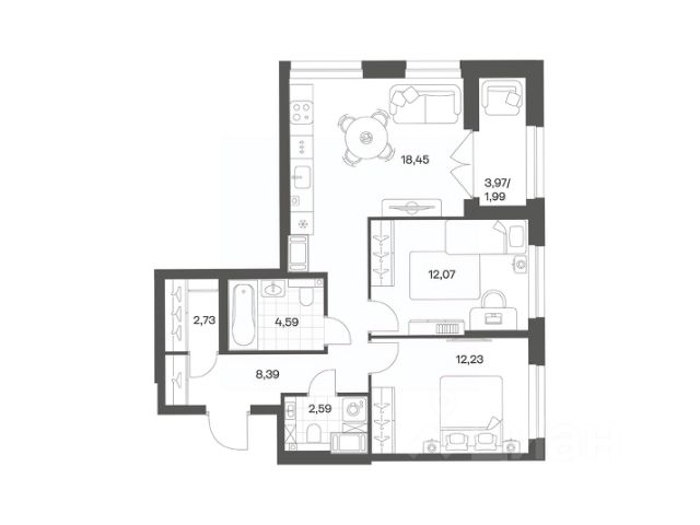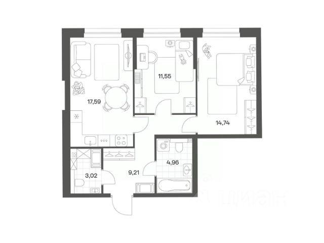Продается квартира площадью 63.04 м² на 9 этаже 2 секции в Речной квартал от компании ГК "ТРЕСТ". Площадь кухни 18.45 м². Семейный жилой комплекс комфорт-класса "Речной квартал" от Группы компаний "ТРЕСТ" расположен в Невском районе Петербурга на пересечении Октябрьской набережной и Русановской улицы. Первая очередь квартала состоит из трёх корпусов, расположенных лучеобразно, чтобы максимально использовать естественное освещение и обеспечить видовые точки на локацию. Проект выделяется современными архитектурными решениями и дизайном. Концепция развития и благоустройства придомовой территории разделена на зоны отдыха, досуга и игровые площадки с учетом возраста и потребностей детей и взрослых. Квартал рассчитан на семейных покупателей, поэтому здесь нет студий: только одно-, двух- и трёхкомнатные квартиры. В проекте представлены квартиры с кухнями-гостиными, мастер-спальнями, гардеробными и кладовыми. "Речной квартал" - современный жилой комплекс с разнообразным благоустройством придомовой территории, просторными европланировками, закрытой охраняемой территорией и подземными паркингами. На территории комплекса уже функционирует детский сад на 110 мест. Также в квартале будет построена общеобразовательная школа на 475 мест с бассейном и стадионом. Открытие школы запланировано на 2029 год. Квартиры в ЖК "Речной квартал" можно приобрести с готовой отделкой от застройщика. Для покупателей квартир предусмотрено два варианта чистовой отделки "Ваниль" и "Шоколад". Чистовая отделка в квартирах ЖК "Речной квартал" предполагает монтаж натяжных потолков, укладку ламината, оклейку стен обоями под покраску, установку светильников и межкомнатных дверей. При отделке новой квартиры применяются качественные, натуральные и экологичные материалы, монтируется стильная импортная сантехника европейских брендов. В объявлении указана стоимость квартиры при 100% оплате. При других формах оплаты - базовую стоимость квартиры уточняейте на официальном сайте компании или у менеджера отдела продаж. Застройщик АО "Специализированный застройщик "Строительный трест".