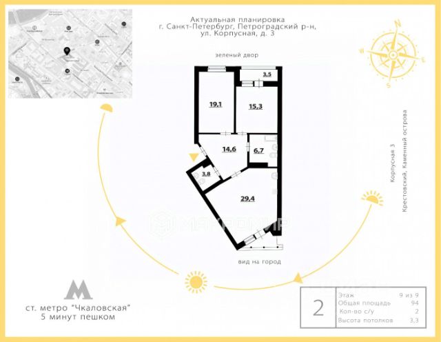 "Визионер" — новый дом элит-класса от RBI в самой престижной локации Петербурга на Петроградской стороне. Рядом — парки Крестовского и Петровского островов, яхт-клубы, бизнес-центры, частные школы и бутики Большого проспекта Петроградской стороны. Камерность поддерживается за счёт деления дома на три разновысотных корпуса и небольшого количества квартир — в доме их всего 225, от 32 до 147 м². Планировки — с большими кухнями-гостиными, мастер-спальнями и функциональными эркерами. На верхних этажах — квартиры с потолками 3,3 м и видовыми террасами: отсюда открывается вдохновляющая панорама исторического окружения Средней Колтовской и Глухой Зелениной улиц. В квартирах — большие алюминиевые окна с накладками из массива дерева. Все лоты продаются без отделки. Элегантное сочетание матового клинкерного кирпича и линеарных объёмов фасадов отсылает к характерным конструктивистским нюансам промышленной архитектуры исторического Петербурга, в особенности здания силовой подстанции фабрики "Красное Знамя", которое располагается рядом. Мягкие линии скруглённых углов гармонируют с плавными изгибами эркеров, а акцентный портал парадного входа приглашает в лобби, сквозь витражные окна которого открывается новая перспектива знакомой локации. Специально для "Визионера" архитектор Евгений Герасимов разработал эксклюзивный паттерн по типу шахматной клетки. Этот орнамент отражает особый визионерский нрав дома и прослеживается не только в перфорированных панелях, которые структурируют пространство лобби, но и в декоративных нишах фасада. Ещё одним украшением парадного вестибюля станет серия интроспективных керамических панно художницы Юлии Клоповой: первое в своей визуальной форме воплощает интуицию, второе — стратегию. Для жителей оборудуют подземный паркинг на 153 машиноместа с усилением сигнала мобильной связи. На первом этаже — собственный фитнес-зал (158 м²) с выделенной зоной тренажёров, секцией для йоги, душевыми и оборудованным массажным кабинетом. В каждой парадной предусмотрены колясочные. Отдельно можно докупить кладовую. В приватном дворе разобьют пейзажный сад со взрослыми деревьями и многолетними кустарниками — всего 4500 растений, которые сохранят привлекательность круглый год. Здесь появятся деревянные скамейки, лёгкие металлические столы и стулья, уличные светильники-торшеры, чтобы во дворе можно было не только подышать свежим воздухом, но и поработать — свободный Wi-Fi на территории. В зоне "зелёной комнаты" установят уличные обогреватели. Детские игровые площадки удалены от мест релаксации и оборудованы развивающими элементами от Richter RUS. В Петербурге игровое оборудование Richter эксклюзивно представлено в домах RBI и в "Новой Голландии". Двор без машин полностью огорожен и охраняется круглосуточно. Вход на территорию — по бесконтактному цифровому ключу. "Визионер". Дом, достойный взглядов.