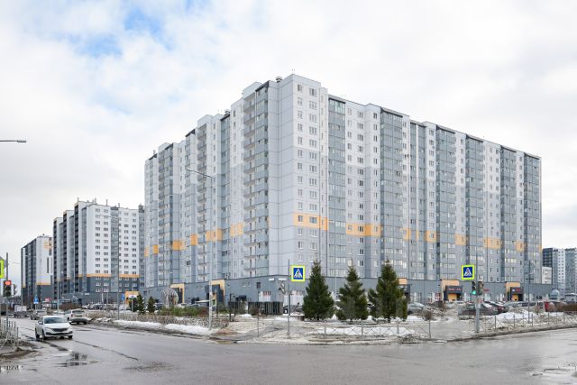 В состав жилого комплекса "Ювента" входит три здания комфорт-класса высотой 6, 9 и 11 этажей с яркими разноцветными фасадами, а также пристроенный корпус детского сада на 80 малышей.