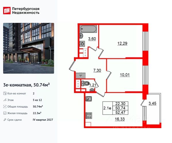 Цена действует при 100% оплате и на определенные ипотечные программы. Подробности — в отделе продаж по телефону. Продается 2-комнатная квартира в ЖК "Пулково Лейк" на 2 этаже. Общая площадь составляет 53.60 кв. м. Квартира с чистовой отделкой. Жилой комплекс "Пулково Лейк" располагается по адресу Санкт-Петербург, Московский. Пулково Лейк - проект малоэтажной застройки на берегу озера на границе Московского и Пушкинского районов. Дома высотой всего 4 этажа, квартиры от уютных студий до трехкомнатных квартир для большой семьи. Широчайший выбор планировок, включая квартиры с мастер-спальнями, патио, каминами, саунами, двухуровневые квартиры. Школа, детские сады, парк на берегу озера и выезды на Пулковское и Петербургское шоссе. Расположение: • 5 мин на авто до Аэропорта Пулково; • 10 мин на авто до станций метро "Московская; • 10-15 мин на авто до городов Пушкина, Павловска и Гатчины; • 20 мин на авто до центра Санкт-Петербурга. Квартиры в проекте сдаются с предчистовой и чистовой отделкой Соmfоrt Stоnе и Соmfоrt Wооd по современным стандартам - Вы можете сами выбрать отделку, подходящую именно Вам. Дома оборудованы самыми современными инженерными системами и "Умным домом". В рамках проекта будет построена современная школа на 925 мест и 2 детских сада на 160 и 240 мест, выезды на Пулковское и Петербургское шоссе, а также храм рядом со сквером "Пулковский рубеж". Общественное пространство вдоль берега озера превратится во всесезонный парк, в котором найдется место для любых активностей от пробежек, катания на САПах и велосипедах до отдыха в шезлонгах и любования закатом солнца. Зимой будет работать каток, проложен лыжный маршрут, предусмотрено место для новогодней елки и горок для детей. Для Ваших питомцев - площадка для выгула собак. Преимущества: • Высота потолков от 2,6 до 4,5 м; • Уникальные планировки; • Парк на берегу озера; • Система "Умный дом"; • Дворы без машин; • Колясочная в парадной; • Видеонаблюдение в холлах, на первом этаже, в лифтах и в паркингах. Успейте приобрести квартиру на выгодных условиях! Чтобы узнать подробности, обращайтесь за консультацией по телефону.