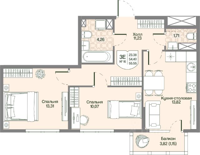 Продается уютная 2-комнатная квартира от застройщика в жилом комплексе "Бионика Заповедная" в динамичном Приморском районе. До метро можно добраться на транспорте всего за 11 минут. Мастер-спальня с собственной ванной комнатой. Самое приватное пространство в вашей квартире. Уникальная, функциональная европланировка, большая кухня-гостиная 16.58 м², вместительная прихожая 7.42 м². Общая площадь квартиры - 56.55 м², жилая 24.96 м², высота потолка 2.77 м. Квартира продается с отделкой "NORD LINE WHITE ВК NEW". Что особенного в ЖК "Бионика Заповедная"? • Оазис в городе 3 минуты пешком до Новоорловского заказника (140 ГА) • Захватывающие виды из окон на хвойный лесопарк • Всесезонный "Заповедный парк" во дворе площадью 23000 кв.м. • 5 единых входных групп с авторским дизайном и лаундж-зонами, сити-виллы на первых этажах с палисадниками и высотой потолков до 4 м • Места притяжения: фонтан "Бионика", спортивный кластер со скейт-парком, фотозоны с арт-объектами