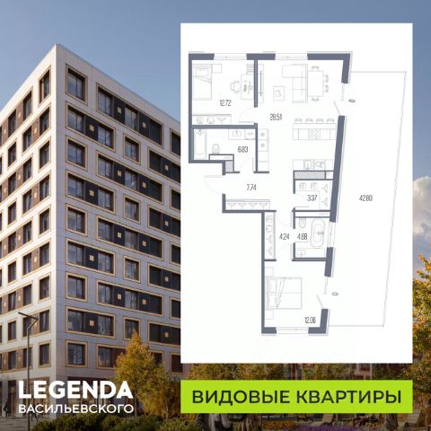 Спешите оформить бронирование на этих условиях! Предложение ограничено! Стоимость квартиры указана со скидкой, ваша экономия составит 4,470,000 RUB. Звоните, мы вам все подробно расскажем! 2-комн. квартира с предчистовой отделкой в ЖК "Северный ветер" на 4 этаже. Общая площадь: 63.65 кв.м., жилая: 27.8 кв.м., площадь просторной кухни-столовой: 15.9 кв.м. Комнаты изолированные, все окна выходят на одну сторону. В квартире два совмещенных санузла. Высота потолков 2.98 м. Дом монолитный, многоподъездный, переменной этажности, от 8 до 15 этажей. Квартира находится в 1-й секции высотой 8 этажей в корпусе 2-2. На этаже 5 квартир. В подъезде 1 пассажирский и 1 грузовой лифт. Окончание строительства - 4 квартал 2028 года. Оформление сделки по договору долевого участия. В основу концепции проекта "Северный ветер" легла идея деления квартала на шесть кластеров — активный городской, тихий природный, спортивный, семейный, культурный и рекреационный. Внутри каждого кластера будут организованы разные по характеру площади со своим назначением. Все их свяжет кольцевой бульвар, соединенный с большим парком и сопровождаемый водными аллеями по периметру всего квартала. Внешний облик "Северного ветра" вдохновлен скандинавским функционализмом и финским модернизмом, которым присущи лаконичные формы, динамичные разноуровневые объёмы, ритм окон, балконов и террас, сочетание натуральных текстур, а также единство экстерьера и интерьера. Дворы мы организовали на стилобатах домов. За счёт этого они приподнялись над улицей, стали еще более приватными и безопасными. Для тех, кому двор на стилобате кажется слишком приземленным, мы создали особенные зеленые террасы с великолепным видом на залив. Они появятся на крыше дома, в котором расположен дом культуры. Мы разделили лобби на два типа — большие (одно на каждый дом) и компактные (на каждую секцию). Для создания интерьеров лобби и холлов мы используем материалы природных оттенков, текстуры дерева и камня, матовые поверхности. В большие открытые пространства запускаем много естественного света, а витражное остекление органично связывает помещения с ландшафтом. В квартале спроектировано более 65 типов планировочных решений. Это значит, что любой жизненный сценарий может быть здесь реализован. #zmgAWT 2-комнатная квартира в ипотеку рядом с метро Приморская.