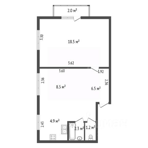Квартира расположена на 5 этаже 19-ти этажного дома, просторная планировка предусматривает две спальные комнаты, 20 кв м и 17 кв.м., кухню-гостиную 46 кв м, санузел 2.56 кв.м., ванную комнату 3,9 кв.м., лоджию 7,6 кв.м.