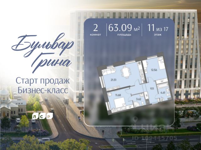 Цена действует при 100% оплате и на определенные ипотечные программы. Подробности — в отделе продаж по телефону. Продается 2-комнатная квартира в ЖК "Бульвар Грина" на 3 этаже. Общая площадь составляет 52.85 кв. м. Квартира с white box отделкой. Срок сдачи: 4-кв. 2028. Жилой комплекс "Бульвар Грина" располагается по адресу Санкт-Петербург, Василеостровский. Бульвар Грина - проект бизнес-класса в престижной локации Васильевского острова. Каждая деталь комплекса продумана до мелочей: от авторской архитектуры и дизайнерских холлов до приватных дворов, где каждый житель найдет свой уголок для отдыха. Расположение: • 1 минута пешком до парковой зоны, высаженной "Группой ЛСР"; • 3 минута пешком до набережной Финского залива; • 5 минут пешком до Линейного парка; • 20 минут на автобусе от станции метро "Приморская" до ул. Чирикова; • 20 минут на авто до станций метро "Приморская" и "Горный институт"; • 25 минут на авто до аэропорта Пулково по ЗСД; • 25-30 минут на авто до Курортного района Финского залива. Развитая сеть общественного транспорта, удобные выезды на ЗСД позволят быстро добраться в любую точку Санкт-Петербурга. В 13 минутах ходьбы в перспективе запланировано открытие станции метро "Морской фасад", что улучшит транспортную доступность локации и повысит ее инвестиционную привлекательность. Приватные дворы "Бульвара Грина" превратятся в уютные оазисы. Здесь будет реализована индивидуальная концепция благоустройства, включающая создание современных лаунж-зон и оборудованных игровых площадок. Преимущества ЖК: • Вдохновляющая локация на Васильевском острове. В двух шагах от Финского залива. Архитектура, вдохновленная морем. • Особый стиль жизни. Приватные дворы и парковая зона за окнами. • Всё для вашего комфорта. Подземный паркинг, система "умный дом", детский сад на первом этаже. • Отличная транспортная доступность. Рядом выезд на ЗСД, до метро "Приморская" и "Горный институт" 10-15 минут на авто, перспективная станция "Морской фасад". Успейте приобрести квартиру на выгодных условиях! Чтобы узнать подробности, обращайтесь за консультацией по телефону.